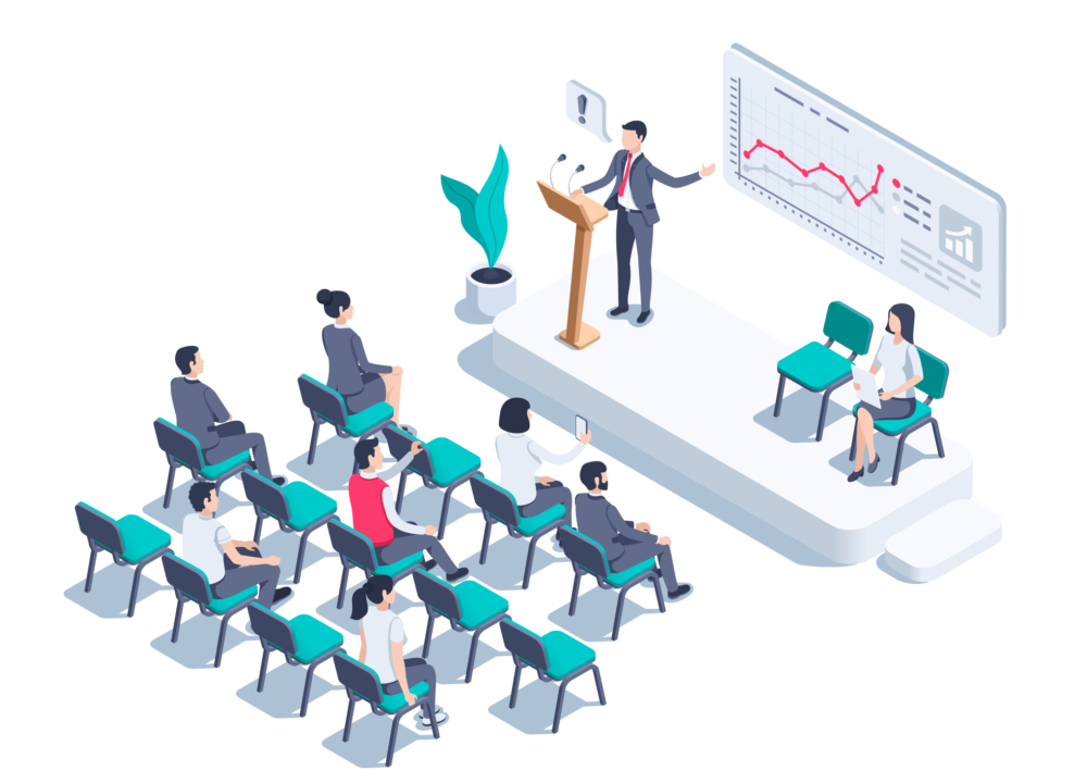 企業の認知や顧客の獲得、新商品の発表、学術発表や研修会などで行われる講演会やセミナー。