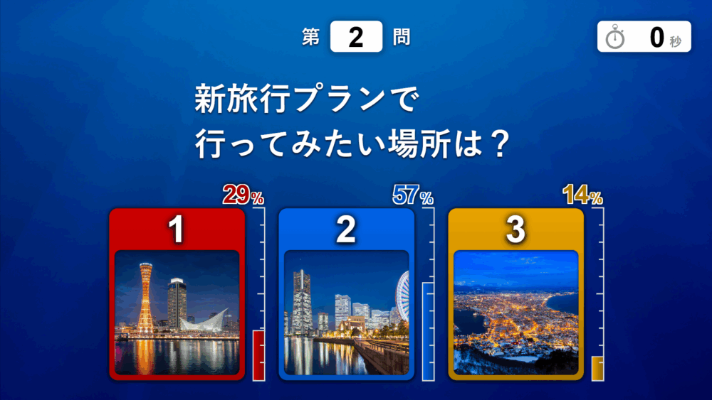 結果を元にこの後のトークテーマを変えたり、客席に質問を投げかけたり、参加者とのやり取りを行いながらプレゼンを行えます!